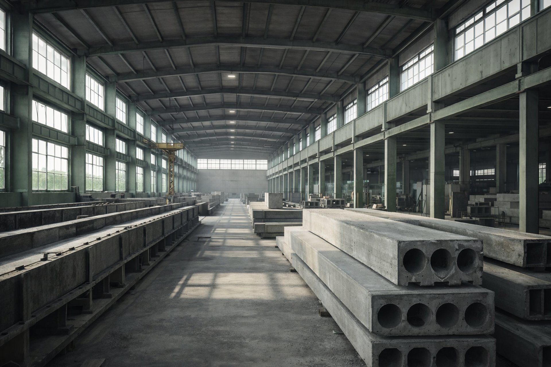 Produção de elementos pré-moldados padrão para construção e infraestrutura, com foco em geração de caixa e escala industrial.
